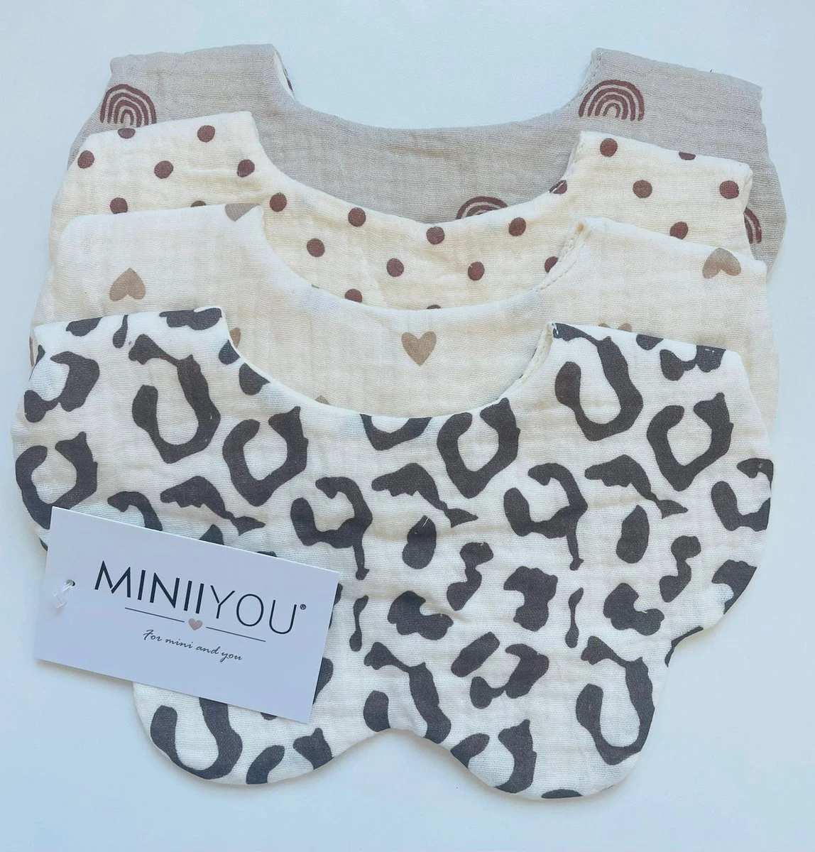 De slab bestaat uit 6 hydrofiele lagen, waardoor de slab extra vocht kan opvangen. Hierdoor blijft de kleding van jouw MINII droog, wat erg comfortabel is voor je kindje. De slabbetjes zijn gemaakt van 100% katoen en zijn voorzien van erg mooie prints.