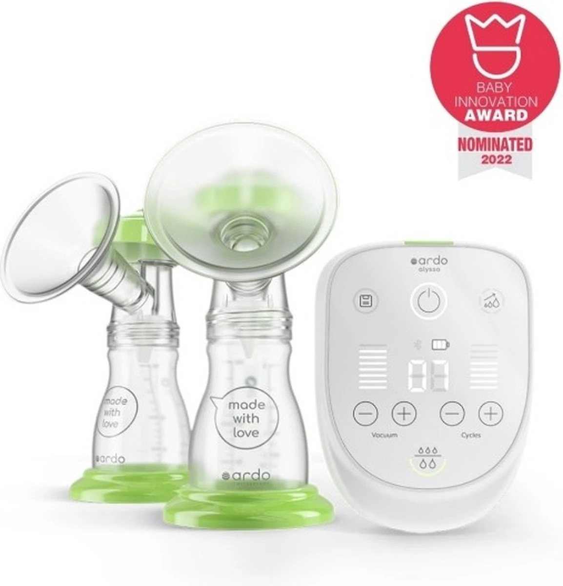 De Ardo Alyssa Double borstkolf is een kleine en krachtige pomp die speciaal ontwikkeld is door Ardo in samenwerking met moeders en wordt aangeraden door experts, zoals lactatiekundigen, verloskundigen en kraamverzorgers. De gecertificeerde Ardo Alyssa kolf is de eerste borstkolf in de wereld met een automatische Power Pumping functie waarmee je je melkproductie kunt verhogen!