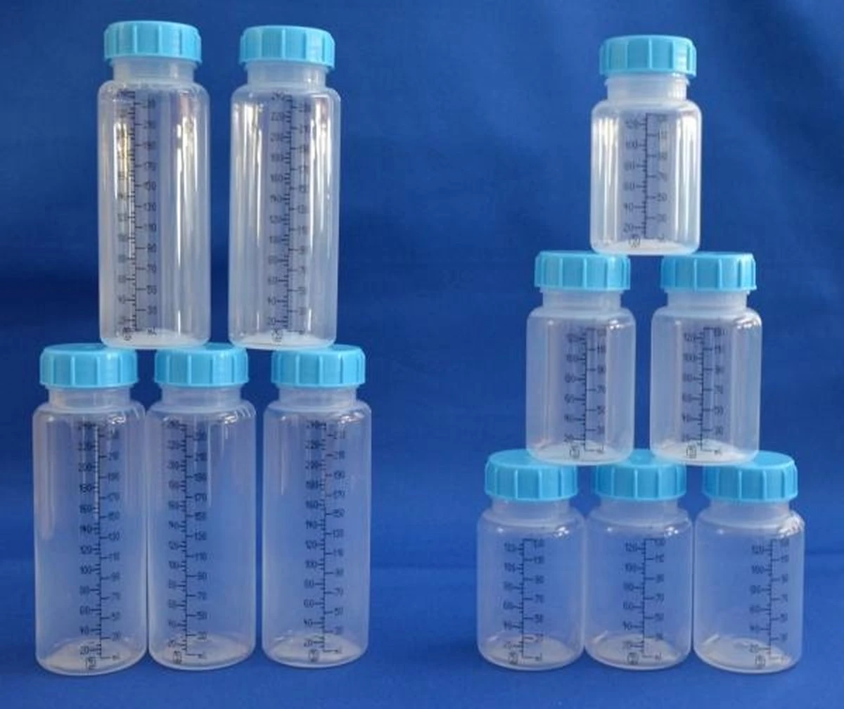 De flessen kunnen worden ingevroren voor opslag tot -30 ° C en kunnen in de magnetron worden verwarmd. De flessen passen onder de borstkolven van Medela ( smalle hals)