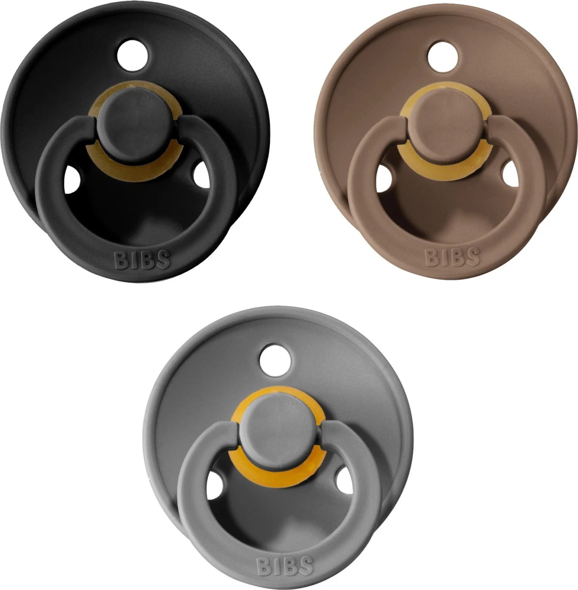 Deze set van 3 BIBS fopspenen bevat de kleuren: Smoke, Dark oak en Black! BIBS fopspenen bestaan uit 100% natuurlijk rubber, zijn flexibel en voelen fluweelzacht aan. De BIBS speen is ontwikkeld om de zuigreflex van het kindje te ondersteunen. Het schildje van de speen is rond en buigt weg van het gezichtje, waardoor eventuele irritaties worden verminderd. De BIBS fopspeentjes komen in énorm veel kleuren voor en hier blijven talloze prachtige creaties bijkomen. Naast het unieke design van de speen, heeft de BIBS speen ook hoogwaardige kwaliteiten én voelt deze comfortabel aan.