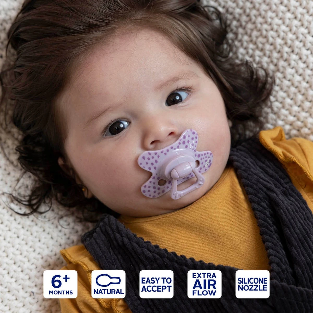 - De gaatjes in het fopspeenschildje zorgen voor extra luchttoevoer wat huidirritatie voorkomt. .