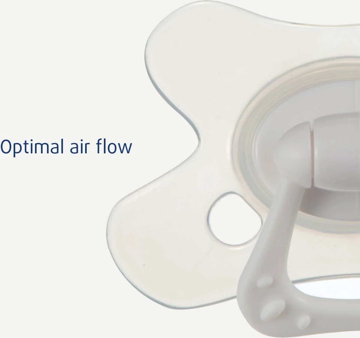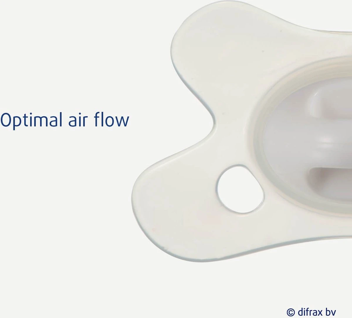 Deze unieke fopspeen heeft een vlindervormig schildje, waardoor de fopspeen mooi past op het gezicht van je baby. De neusuitsparing zorgt ervoor dat je baby vrij kan ademen door de neus. Door de gaatjes is er extra luchttoevoer, wat huidirritatie voorkomt.