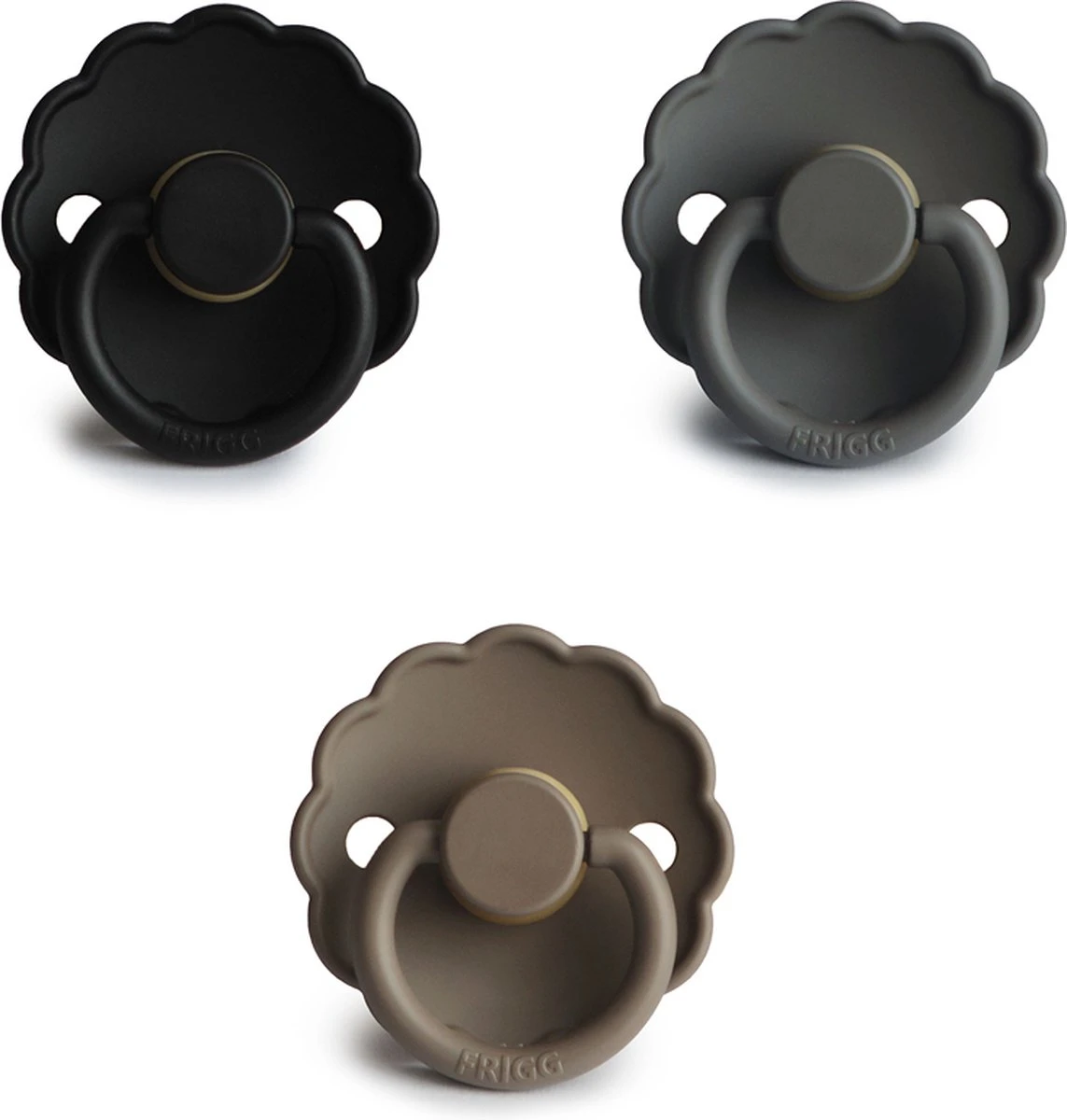 Deze set van 3 Daisy Frigg fopspenen bevat de kleuren: Cream, Woodchuck en Portobello! De Frigg fopspenen zijn voorzien van een uniek design en een comfortabele vorm. De Frigg fopspenen hebben twee luchtgaten in het schildje zitten, waardoor je kleintje altijd goed kan blijven doorademen. De Frigg speen is gemaakt van natuurrubber en het schildje is gemaakt van Polypropyleen. Berg de Frigg speen altijd vocht- en lichtvrij op en stel de spenen niet bloot aan direct zonlicht, dit kan de kwaliteit van de speen niet garanderen.