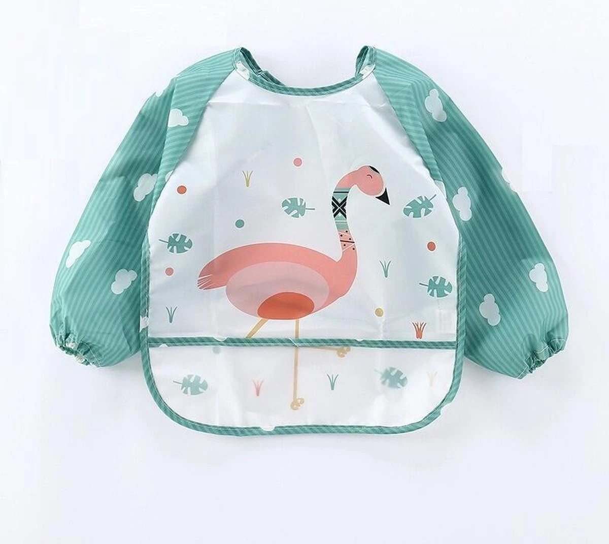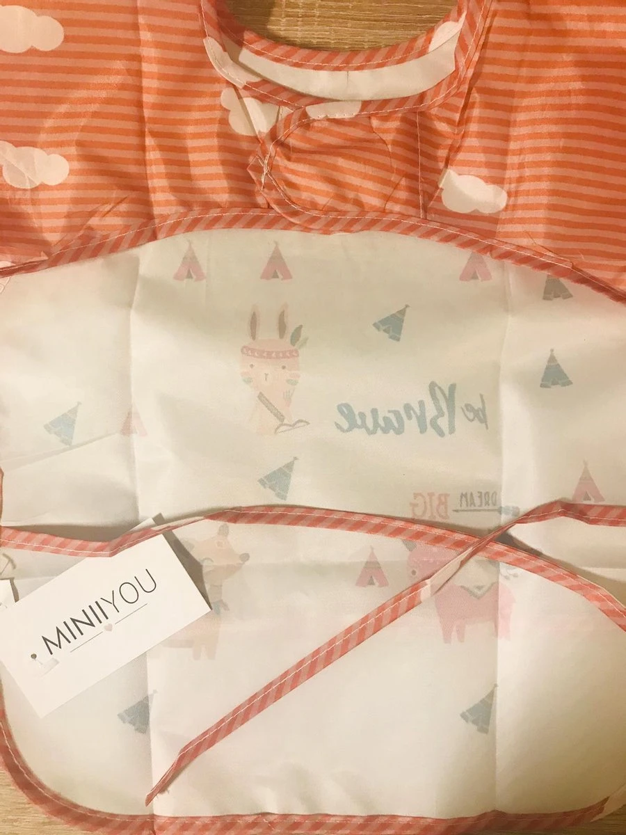 Het product is ook geschikt als knutsel/ verf short om verf,- plak,- stiftvlekken etc. op de kleding te vermijden! Geschikt voor baby & peuter. Het slabbetje kan aan de achterzijde vastgemaakt worden met touwtjes. Makkelijk af te wassen met een beetje afwasmiddel!