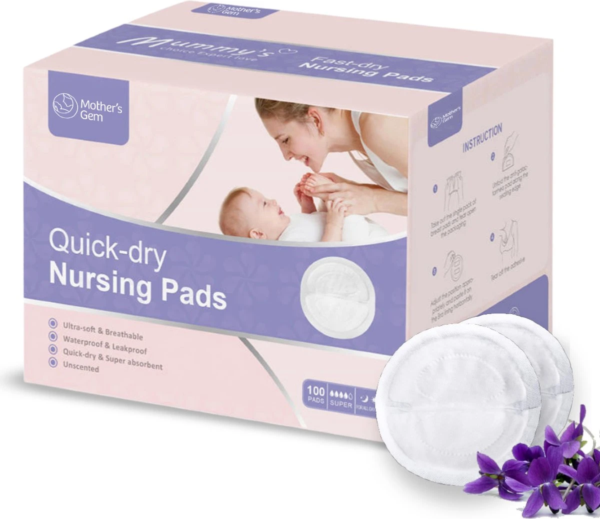 Mother’s Gem Zoogcompressen 100 Stuks – Borstcompressen Wegwerp – Kraampakket Nursing Pads – Extra Dun En Onzichtbaar – Zoogkompressen Superabsorberend