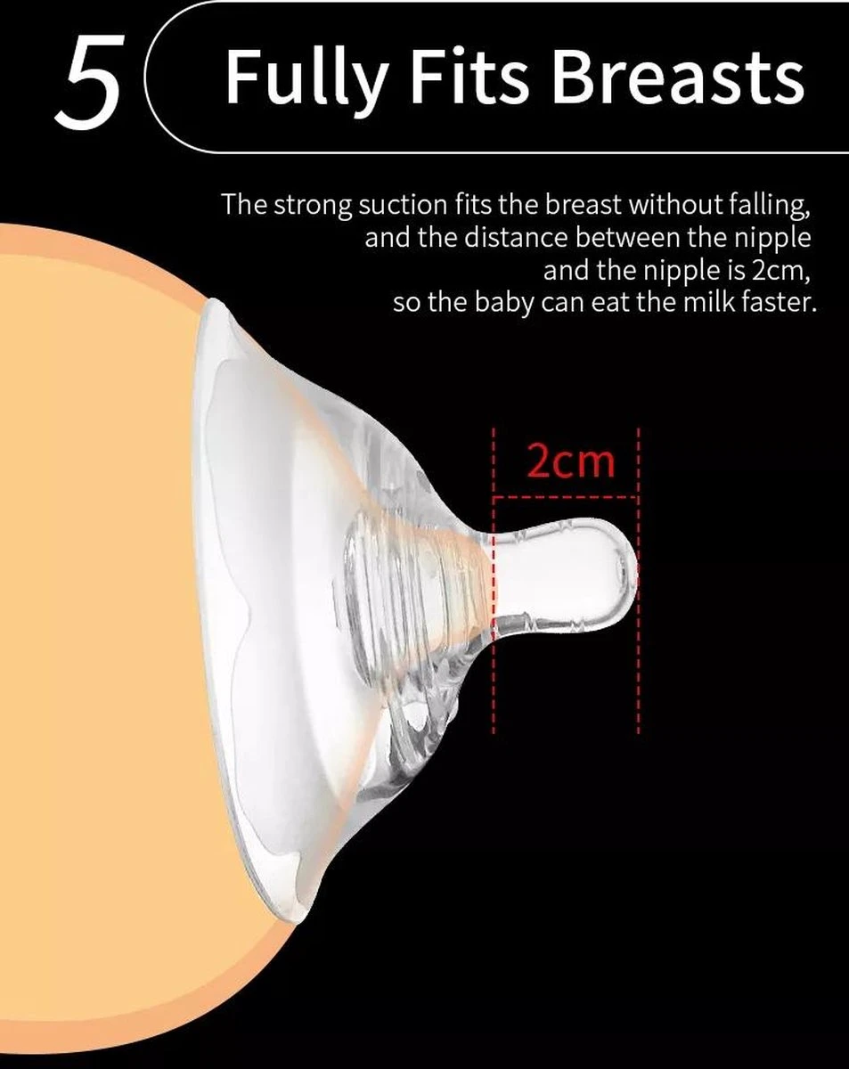 - Maakt borstvoeding mogelijk ondanks aanlegproblemen of pijnlijke, platte of ingetrokken tepels